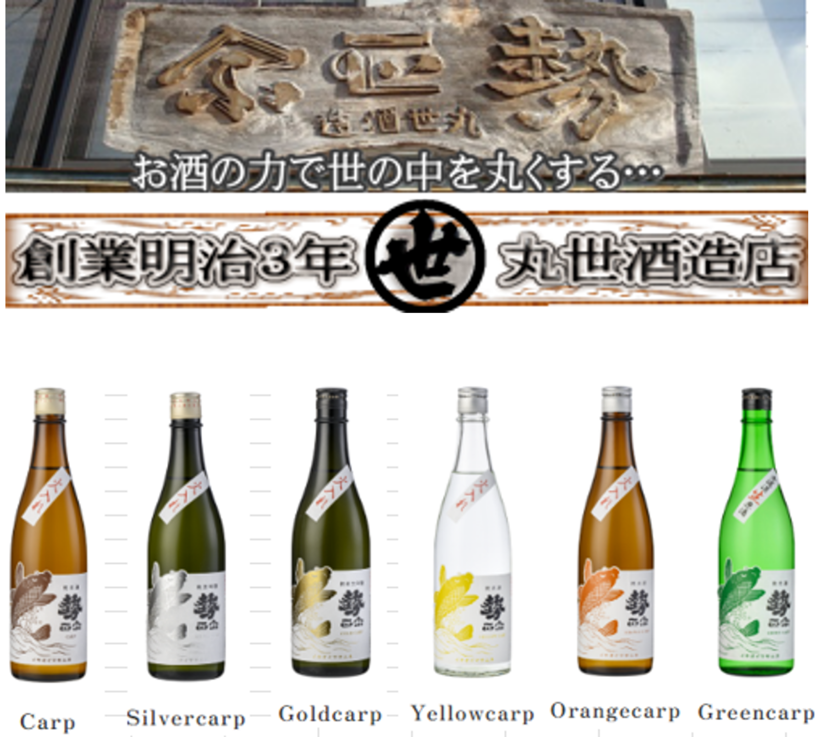 勢正宗の「勢」は、鯉の滝登り(登竜門)の様子を表しており、昔からの伝統製法である「もち米熱掛四段仕込」を新しい感覚で造り上げた商品、新たな鯉の誕生という気持ちを込めて、勢正宗「carp」と名付けました。 もち米四段仕込みの新たな可能性を探求するべく、酒米、酵母、もち米の特徴をそれぞれ生かしたバラエティ豊富なお酒です。